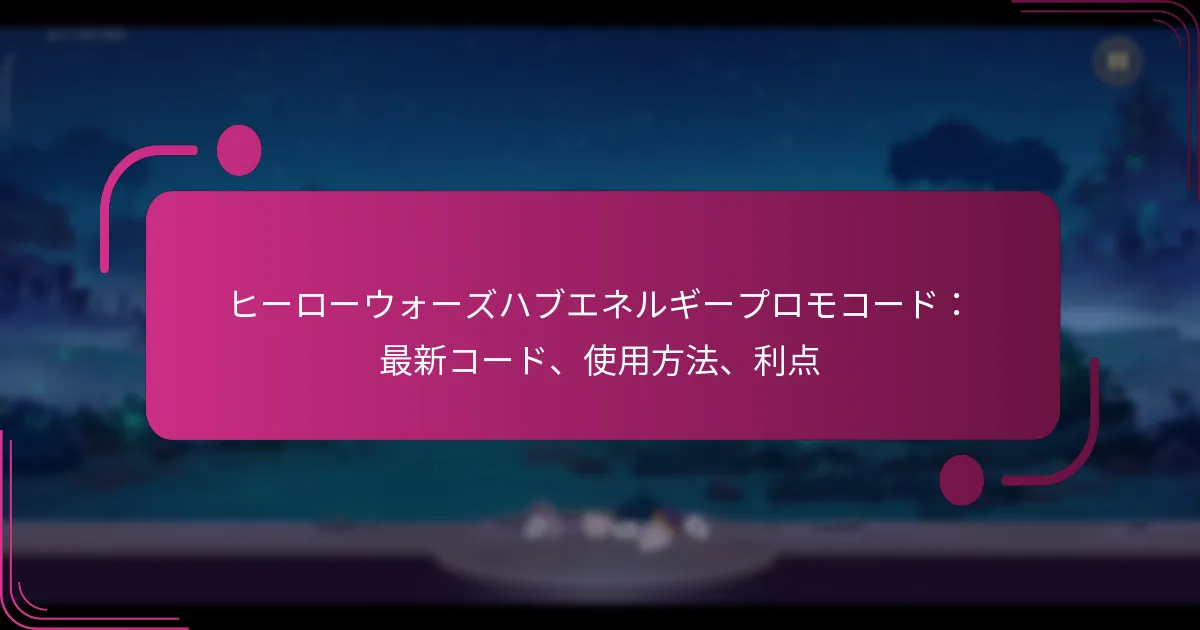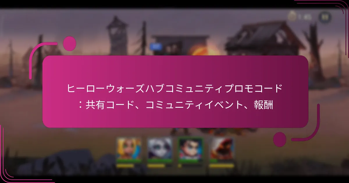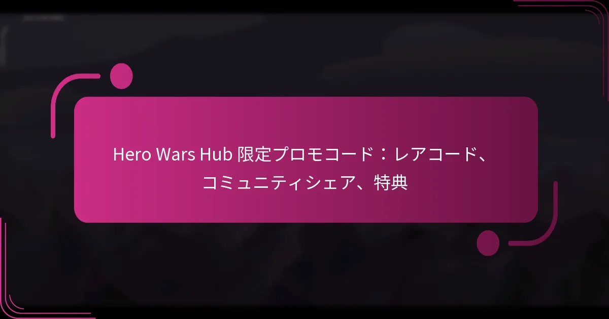 Hero Warsでは、プレイヤーにユニークな報酬やボーナスを提供し、ゲームプレイ体験を向上させる限定プロモコードが多数用意されています。これらのコードは特別なイベントやプロモーションに関連していることが多く、貴重なリソースやスキン、その他のゲーム内アイテムを提供します。ただし、時間に敏感であり、すぐに期限が切れる可能性があるため、プレイヤーはその利用可能性について常に最新情報を把握しておくことが重要です。 Hero Warsの現在の限定プロモコードは何ですか? Hero Warsでは、プレイヤーにユニークな報酬やボーナスを提供するさまざまな限定プロモコードが用意されています。これらのコードは、リソースやスキン、その他の貴重なアイテムを提供することでゲームプレイを向上させることができますが、時間に敏感であり、すぐに期限が切れることが多いです。 アクティブなプロモコードとその有効期限 現在、Hero Warsでアクティブなプロモコードは以下の通りです: CODE1 – 有効期限:MM/DD/YYYY CODE2 – 有効期限:MM/DD/YYYY CODE3 – 有効期限:MM/DD/YYYY これらのコードは有効期限前に引き換えて、報酬を最大限に活用してください。新しいコードは頻繁にリリースされる可能性があるため、最新情報を把握することが不可欠です。 新しいプロモコードを定期的に見つける方法 Hero Warsの新しいプロモコードを継続的に見つけるために、プレイヤーは公式ゲームチャンネルやコミュニティフォーラムを定期的にチェックするべきです。ゲームのソーシャルメディアアカウントをフォローすることでも、新しいプロモーションに関するタイムリーな更新を受け取ることができます。 さらに、ニュースレターに登録したり、専用のゲームコミュニティに参加することで、最新のコードについての情報を得ることができます。多くのプレイヤーが発見したコードを共有しており、これは貴重なリソースとなります。 プロモコード発表の一般的なソース Hero Warsのプロモコードは、さまざまなチャンネルを通じて発表されることが多いです。公式のHero Warsウェブサイトやソーシャルメディアページは、新しいコードの主要なソースです。プレイヤーは、Hero Warsコンテンツに焦点を当てた人気のゲームフォーラムやYouTubeチャンネルにも目を光らせるべきです。 Redditのようなコミュニティ主導のプラットフォームは特に便利で、プレイヤーが新たに発見したコードを頻繁に投稿し、体験を共有しています。これらのコミュニティに参加することで、アクティブなコードを見つけるチャンスが高まります。 プロモコードの有効性の確認 プロモコードを使用する前に、その有効性を確認することが重要です。プレイヤーは、ゲーム内でコードを引き換えようとすることでこれを行うことができます。コードが受け入れられれば有効であり、そうでなければ期限切れまたは誤って入力された可能性があります。 一部のウェブサイトやフォーラムでは、確認済みのコードのリストを提供していることもあり、プレイヤーが正当なコードを使用していることを確認するのに役立ちます。常に複数のソースでコードの状態を確認してください。 期限切れのコードを報告する方法 期限切れのプロモコードに遭遇した場合、それを報告することで共有リソースの正確性を維持するのに役立ちます。ほとんどのゲームコミュニティには、プレイヤーがコードが無効になったことを示すための特定のスレッドやフォーラムがあります。 さらに、公式のHero Warsソーシャルメディアページやサポートチャンネルで期限切れのコードを直接報告することもできます。フィードバックを提供することで、開発者やコミュニティがアクティブなプロモーションを追跡するのに役立ちます。 Hero Warsのプロモコードでどのようなユニークな報酬を得られますか? Hero Warsのプロモコードは、プレイヤーにユニークなゲーム内アイテムや独占ボーナスを獲得する機会を提供し、ゲームプレイ体験を大幅に向上させることができます。これらの限定報酬には、さまざまなゲームプレイの強化が含まれることがあり、ゲームで優位に立とうとするプレイヤーにとって非常に魅力的です。 プロモコードに関連する報酬の種類 Hero Warsのプロモコードは通常、ユニークなゲーム内アイテム、通貨、経験値ブーストなど、さまざまな報酬を提供します。プレイヤーは、通常のゲームプレイでは手に入らないアイテムを受け取ることが期待できるため、これらのコードは特に価値があります。 一般的な報酬の種類には、ヒーローの破片、スキン、キャラクターのレベルアップを助ける特別なポーションが含まれます。さらに、一部のコードはプレイヤーにイベントやチャレンジへの独占アクセスを付与し、さらなる報酬を提供することがあります。 プレイヤーは、これらのコードの利用可能性に注意を払い、期限があり、ゲーム内の特定のイベントやプロモーションに関連していることが多