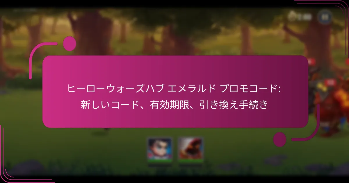 Hero Wars Hubのプロモコードは、プレイヤーにエネルギーブーストやエメラルドなどの独占報酬をアンロックする機会を提供し、ゲーム体験を大幅に向上させることができます。これらの特別な英数字コードをゲームの指定されたエリアに入力することで、プレイヤーは進行を助ける貴重なリソースを簡単に獲得できます。最新のコードを常にチェックして、ゲームプレイを最大限に活用し、得られる利点を楽しんでください。 Hero Wars Hubのプロモコードとは何ですか? Hero Wars Hubのプロモコードは、プレイヤーがゲーム内で独占報酬をアンロックするために使用できる特別な英数字コードです。これらのコードは通常、エネルギーブーストやエメラルドなどの特典を提供し、全体的なゲーム体験を向上させます。 Hero Wars Hubプロモコードの定義 プロモコードは、プレイヤーがゲームに入力してさまざまなゲーム内報酬を受け取るためのユニークな識別子です。これらはゲーム開発者やプロモーションイベントを通じてリリースされることが多く、プレイヤーが実際のお金を使わずに利点を得る機会を提供します。 これらのコードは長さや形式が異なる場合があり、通常は文字と数字の組み合わせで構成されています。プレイヤーは、関連する報酬を引き換えるためにコードを正確に入力する必要があります。 利用可能なプロモコードの種類 Hero Wars Hubで見つけることができるプロモコードにはいくつかの種類があります。これには以下が含まれます: 独占コード:特別なイベントやパートナーシップに関連していることが多く、これらのコードはユニークな報酬を提供します。 エネルギーブーストコード:これらのコードはプレイヤーに追加のエネルギーを付与し、エネルギーが再生されるのを待たずにより多くのゲームプレイを可能にします。 エメラルドコード:これらのコードは、ゲーム内のプレミアム通貨であるエメラルドを提供し、さまざまな購入に使用できます。 各タイプのコードは特定の目的を持ち、ゲームプレイの異なる側面を向上させ、プレイヤーに貴重なリソースを提供します。 プロモコードを使用する利点 Hero Wars Hubでプロモコードを使用することは、プレイヤーに多くの利点を提供します。まず、これらは無料のリソースを提供し、金銭的な投資なしでゲームプレイを大幅に向上させることができます。これは、迅速に進行したい新しいプレイヤーにとって特に役立ちます。 さらに、プロモコードはエネルギーブーストを提供することでプレイヤーの時間を節約し、より多くのバトルに参加したり、クエストを迅速に完了したりすることを可能にします。これにより、レベルアップが早まり、新しい機能のアンロックが促進されます。 最後に、プロモコードからの独占オファーは、プレイヤー間のコミュニティ感を生み出すことができ、彼らはしばしばコードや戦略を共有し、ゲームコミュニティ内でのエンゲージメントとインタラクションを促進します。 プロモコードがゲームプレイを向上させる方法 プロモコードは、プレイヤーに必要なリソースを提供することでゲームプレイを向上させます。たとえば、エネルギーブーストにより、プレイヤーは通常のエネルギー再生の待機時間なしに、バトルやクエストなどのより多くのアクティビティに参加できます。 エメラルドの報酬は、プレイヤーが強力なアイテムやアップグレードを購入することを可能にし、困難なレベルを進行するために重要です。このプレミアム通貨へのアクセスは、特に経験豊富なプレイヤーに対抗する際に、競争の均衡を保つことができます。 プロモコードを引き換えるには、プレイヤーは通常、ゲーム設定やショップエリアの指定されたセクションに移動し、コードを入力して引き換えを確認する必要があります。多くのコードは期限があるため、期限に注意を払うことが重要です。 Hero Wars Hubのプロモコードをどのように引き換えますか? Hero Wars Hubのプロモコードを引き換えるには、プレイヤーはゲームの指定されたエリアにコードを入力する必要があります。このプロセスには、プロモコードセクションにアクセスし、エネルギーブーストやエメラルドなどの報酬を獲得するためのいくつかの簡単な手順に従うことが含まれます。 コードを引き換えるためのステップバイステップガイド Hero Wars Hubのプロモコードを成功裏に引き換えるために、以下の手順に従ってください: デバイスでHero Warsゲームを開きます。 設定またはプロモコードセクションに移動します。通常、メインメニューにあります。 プロモコードを正確に入力し、誤字がないことを確認します。 コードを送信するために確認または引き換えボタンをクリックします。 ゲーム内の報酬を確認して、コードが正常に適用されたかどうかを確認します。 コードを引き換える際の一般的な問題 プレイヤーはプロモコードを引き換えようとする際にいくつかの問題に直面すること