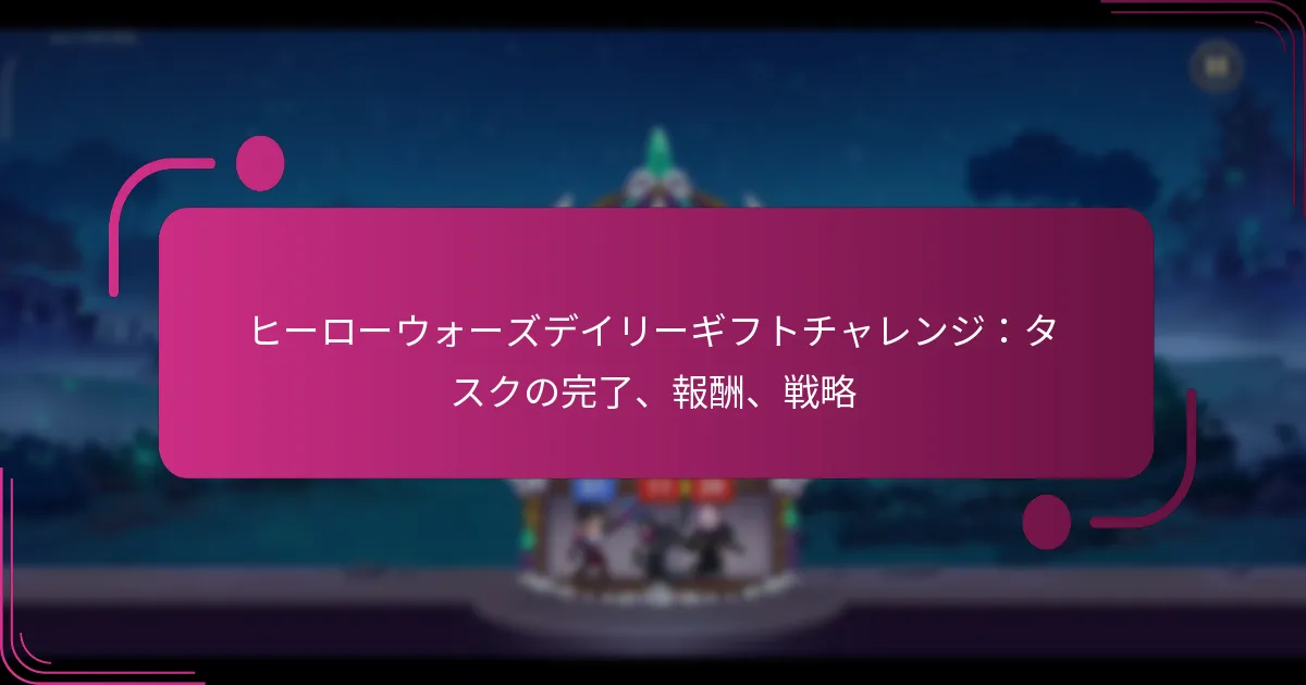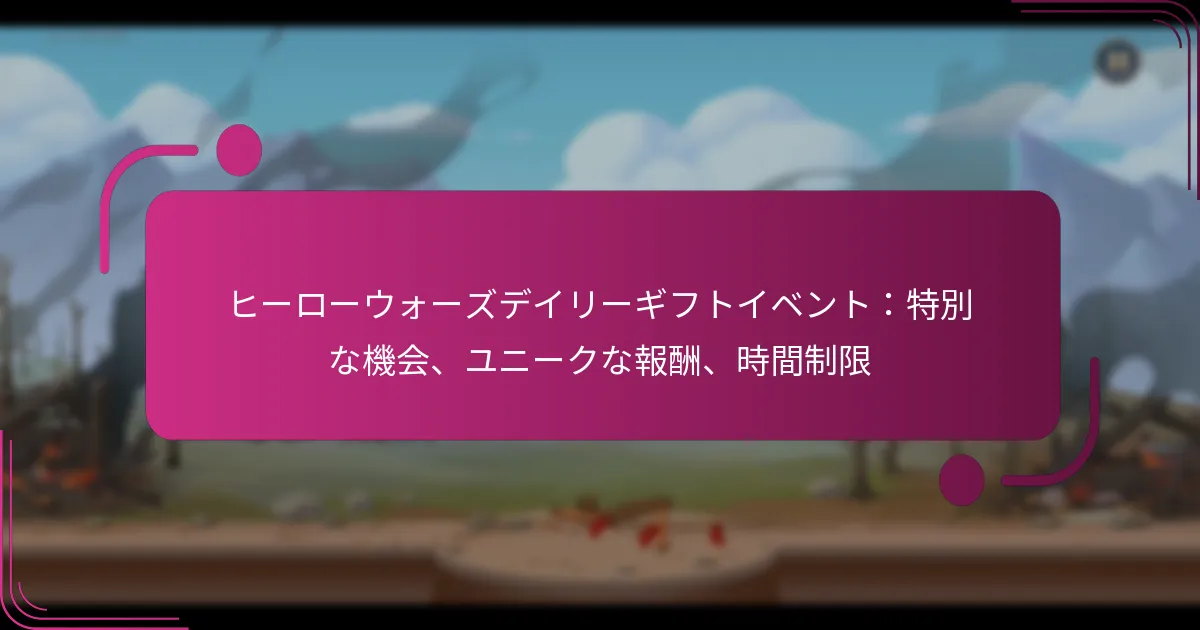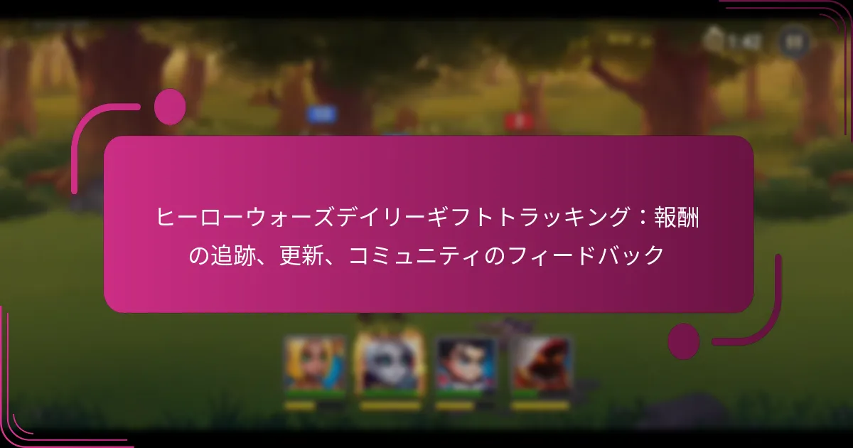 Hero Warsは、プレイヤーにゲームプレイを向上させ、貴重なリソースを提供するために設計された多様な日替わりギフトを提供します。これらのギフトには、ゲーム内通貨、キャラクターのアップグレード、限定アイテムが含まれており、プレイヤーが利益を最大化し、効果的に戦略を立てるのを助けるために分類されています。これらの報酬を集めることで、プレイヤーはキャラクターのステータスを向上させ、新しいスキルをアンロックし、リソースの獲得を改善し、ゲーム内でのスムーズな進行を促進します。 Hero Warsの日替わりギフトにはどのような種類がありますか? Hero Warsは、ゲームプレイを向上させ、貴重なリソースを提供するさまざまな日替わりギフトを提供しています。これらのギフトには、ゲーム内通貨、キャラクターのアップグレード、限定アイテム、消耗品リソース、特別イベントの報酬が含まれ、それぞれがプレイヤーの進行と楽しみを助けます。 ゲーム内通貨の報酬 ゲーム内通貨の報酬は、アイテムの購入やキャラクターのアップグレードに不可欠です。プレイヤーは、日替わりギフトの一部として金、エメラルド、または他の形態の通貨を受け取ることができます。 金:ヒーローのアップグレードや装備の購入に使用されます。 エメラルド:特別なアイテムやオファーを購入できるプレミアム通貨です。 これらの報酬は、ゲーム内での進行能力に大きな影響を与え、チームの強さを高めるための戦略的な購入を可能にします。 キャラクターアップグレードアイテム キャラクターアップグレードアイテムは、ヒーローの能力や戦闘でのパフォーマンスを向上させるために重要です。日替わりギフトには、キャラクターをレベルアップさせるのに役立つポーション、装備、または経験の巻物が含まれることがあります。 ポーション:特定の属性を強化したり、経験値を提供します。 装備:ヒーローにより良い武器や防具を装備させて効果を高めます。 これらのアップグレードアイテムを賢く活用することで、より成功した戦闘とゲームレベルの迅速な進行が可能になります。 限定の特別アイテム 限定の特別アイテムは、短期間のみ入手可能な特別な報酬です。これには、ユニークなスキン、強力なアーティファクト、またはイベント特有の装備が含まれることがあります。 スキン:ヒーローの外見を変更し、しばしばゲームプレイのボーナスを提供します。 アーティファクト:ヒーローのステータスや能力を大幅に強化します。 これらの限定オファーを利用することで、競争上の優位性を得て、全体的なゲーム体験を向上させることができます。 消耗品リソース 消耗品リソースは、ゲームプレイ中に一時的な利益を提供するために使用できるアイテムです。日替わりギフトには、健康ポーション、エネルギーの補充、またはスタミナのブーストが含まれることがあります。 健康ポーション:戦闘中に健康を回復します。 エネルギーの補充:再生を待たずにさらにゲームプレイを可能にします。 これらのリソースは、戦闘中の勢いを維持し、ゲームに中断なく関与し続けるために重要です。 特別イベントの報酬 特別イベントの報酬は、特定のゲーム内イベントや祝典に関連するユニークなギフトです。これには、テーマに沿ったアイテム、ボーナス通貨、または限定キャラクターが含まれることがあります。 テーマに沿ったアイテム:しばしば祝日やゲームの記念日に関連しています。 ボーナス通貨:参加を促すためにイベント中に提供される追加リソースです。 イベントに参加することは、ゲームプレイ体験を豊かにするだけでなく、他の時期には入手できない報酬を得る機会を提供します。 Hero Warsの日替わりギフトはどのように分類されていますか? Hero Warsの日替わりギフトは、提供される報酬の種類に基づいてさまざまなカテゴリに分けられています。これらのカテゴリを理解することで、プレイヤーは利益を最大化し、効果的にゲームプレイを戦略化することができます。 一般的な報酬と希少な報酬 日替わりギフトは、一般的な報酬と希少な報酬に分類できます。一般的な報酬には、プレイヤーが頻繁に取得できるアイテム、基本的なリソースや低レベルの装備が含まれます。これらは日々の進行に不可欠ですが、全体的なゲームプレイに大きな影響を与えることはありません。 対照的に、希少な報酬はあまり頻繁には与えられず、伝説の装備、ユニークなキャラクター、または大量のリソースなどの高価値アイテムが含まれることが多いです。プレイヤーは、これらのギフトを入手可能なときに優先して受け取るべきです。これにより、ゲームプレイ体験に大きなブーストを提供できます。 消耗品と装備 消耗品は、プレイヤーが即時の利益を得るために使用できるアイテムで、健康ポーションやスタミナブーストなどがあります。これらのアイテムは、戦闘中のパフォーマンスを向上させるために重要で